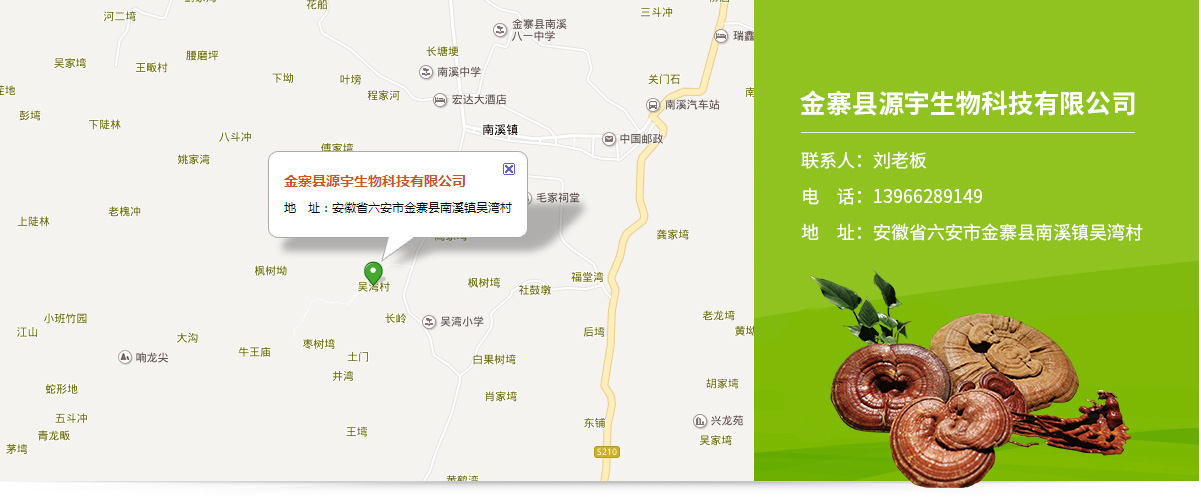 金寨縣源宇生物科技有限公司位于金寨縣南溪鎮吳灣村,是一家專門從事靈芝系列的公司。采取“公司+農戶”的經營模式,著眼于市場需求,引進、開發新產品,建立靈芝、大別山土特產、中藥材生產種植基地,組織農戶生產及產品銷售。 我公司在開始彈孢子粉時會用...